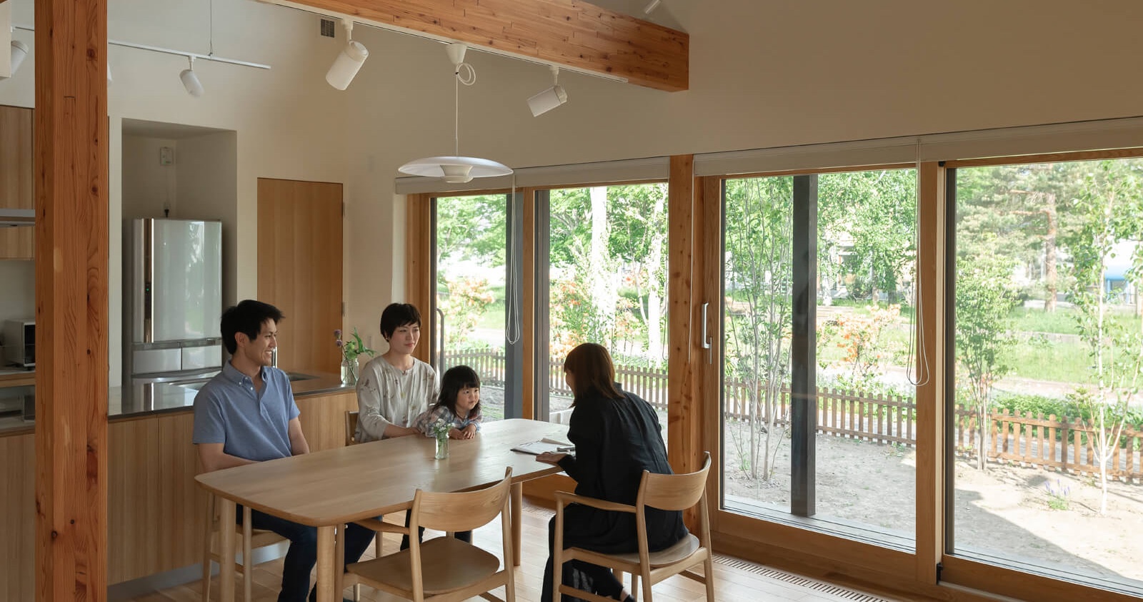 さくらんぼの木に一目惚れし、旭川市中心部への通勤圏内で、豊かな自然に囲まれた閑静な住宅街に土地を購入したご夫妻。奥さんの職場の先輩が家を建てた芦野組に新築を依頼しました。「家を建てたいという話をしたら、先輩が芦野組さんをとてもすすめてくれたんです。子どもには木や自然に触れながら、のびのびと育ってほしいと考えていた私たちにとって、自然素材をふんだんに使用した芦野組の家は理想にぴったりでした。見学会にも足を運び、芦野社長とお話をさせていただいて、その人柄にも惹かれ、すぐに決めました」。