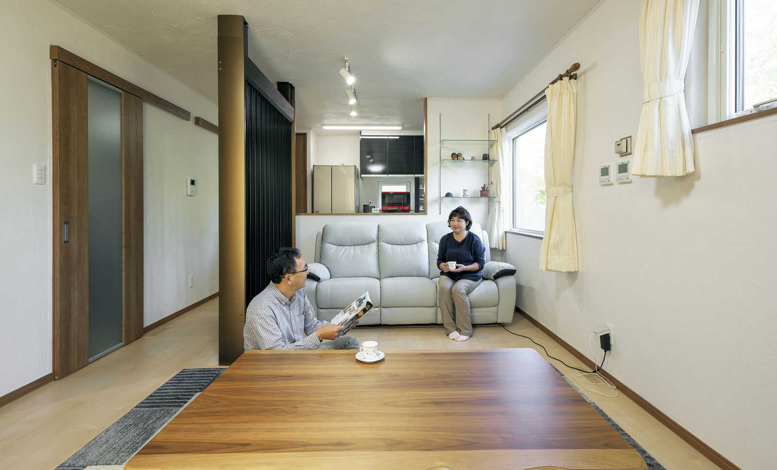 さらに注目したいのがLDKと和室に導入した輻射式冷暖房システム「光冷暖」です。これはパネルラジエータと壁や天井、床などに特殊なセラミックコーティング加工を行い、遠赤外線の輻射によって体感温度をコントロールし、快適さを保つシステムです。風が出ないのでほこりや花粉、カビなどが舞う心配がありません。「風がないのがいいですね。エアコンもありますが、夏に暑がりのお客さんが来た時につけるくらいです」とSさんは満足の表情を浮かべます。