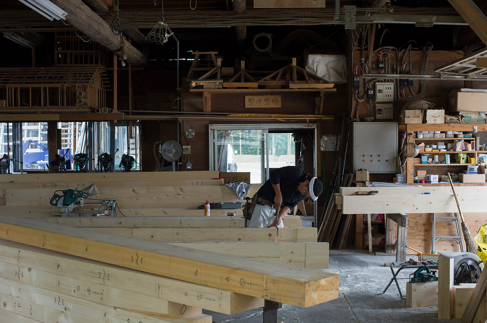 プレカット工法が増えた昨今、大工といってもその技量はさまざま。その中にあり、荒木から部材を削り、継ぎ手の切り込みなどを手作業で仕上げる伝統技術を受け継いでいるのが、武部建設の自社大工たちです。