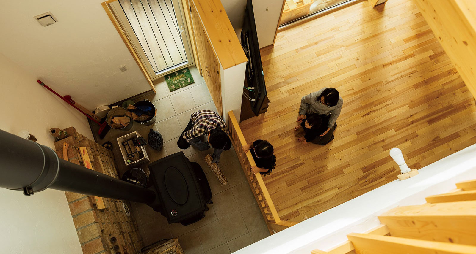 「北清さんの家は、まず玄関に入った時の空気が違ったんです。木を使った内装や薪ストーブのある空間がとても気に入りました。家のつくりがしっかりしていて、住宅性能が確かなのも信頼できました」。北海道の地域工務店で構成される「アース21」に所属し、地元で信頼され薪ストーブの家づくりの実績が多い工務店であることも、依頼の決め手になったといいます。