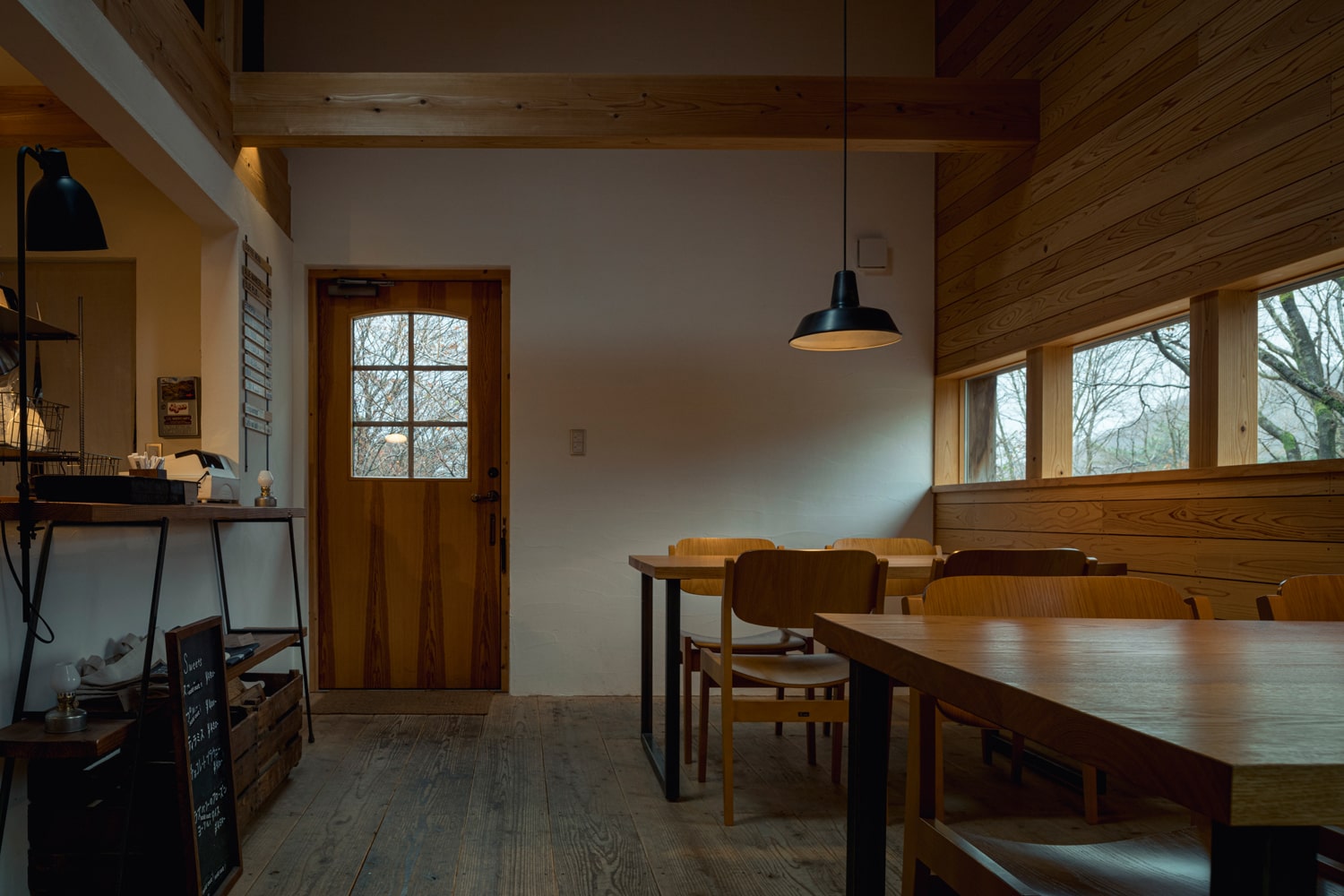 カウンター席を含め全16席の店内は、天井が高くて開放的で、しんとした穏やかな空気感に満ちています。「全体的に木を活かして自然の素材を使った建物にしたいと思っていて。インテリアはなるべく色を使わずトーンが合うように選び、家具や照明は、シンプルで機能的で長く使えるものを吟味しました」。そう話す佐々木さんの見立てでコーディネートされた店内は、室内の木の飴色が深まり、床や家具が使い込まれて空間になじんだ以外は、オープンから6年を経た今も開店当初とほとんど変わっていないといいます。