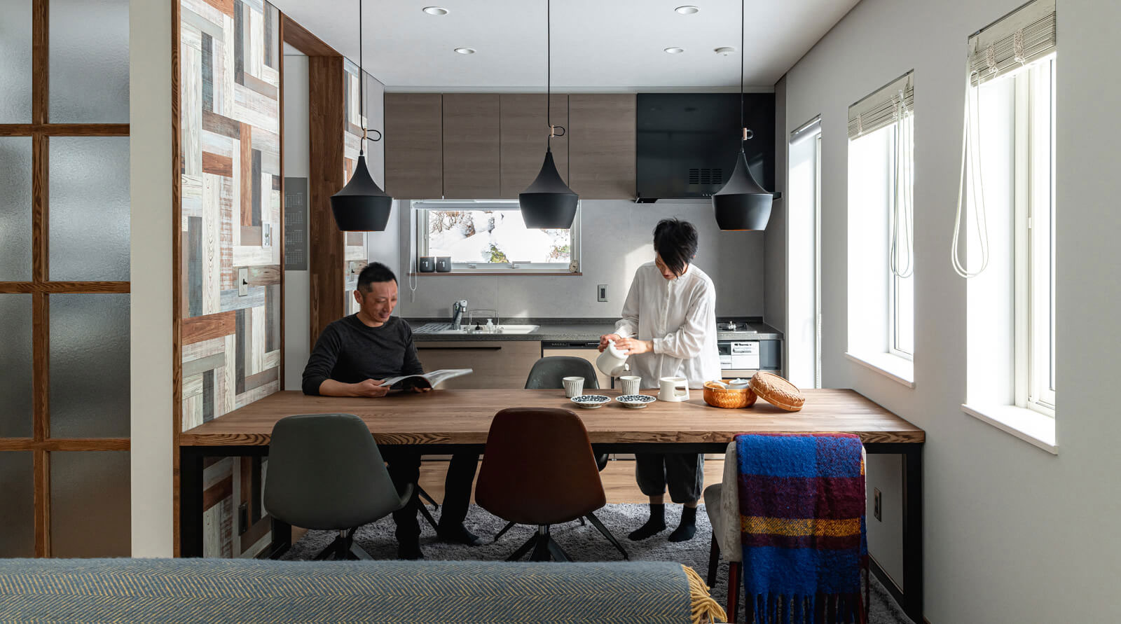 新居で初めて迎えた冬も「日中は暖房を切って過ごせました」と、高い断熱と気密性能が、期待以上の暖かさを実現。パッシブ換気の効果で室内の空気も清々しく快適です。「デザインも性能も、大満足です」とYさんご夫妻。「雪が解けたら、裏庭にピザ窯をつくる計画です。大きな桜の木がある素敵な庭なんですよ」と、春の訪れに期待が膨らみます。