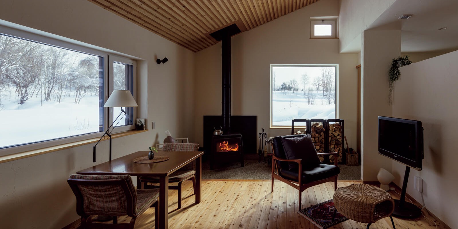 老後を過ごす家だからこそ、コンパクトな平屋造りに。さらに将来を考え、こだわった点が二つあります。一つは暖かい家であること。以前は冬場の住居の寒さに、奥さんが体調を崩すこともあったことから、高い断熱性能も芦野組を選んだポイントとなりました。暖房は、ご夫妻の憧れだった薪ストーブがメイン。新居が完成した12月以降の厳冬期も、朝起きてから数本薪を焚けば、夕方までじんわり暖かいそうです。床暖房とパネルヒーターで、薪ストーブの火がつくまでの間も寒さを感じるときはありません。