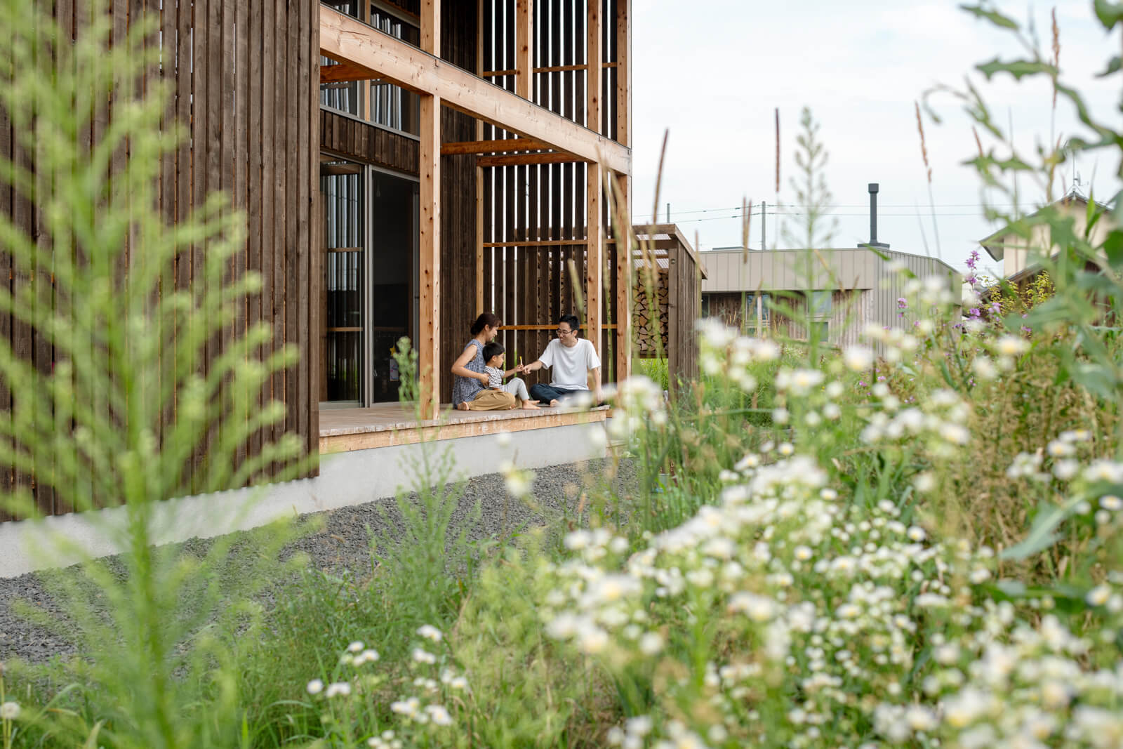 念願の庭は、奥さんの両親が見事な畑に整えてくれたそう。「息子も植物の魅力に目覚めて、朝起きたら庭に花が咲いているか見に行き、水をやるのが日課になりました」。木に囲まれ、ゆるやかに流れる時間が、Tさんご一家にフィットしている様子が言葉の端々から伝わります。これから訪れるいくつもの季節を、ともに歩んでいく住まいが出来上がりました。