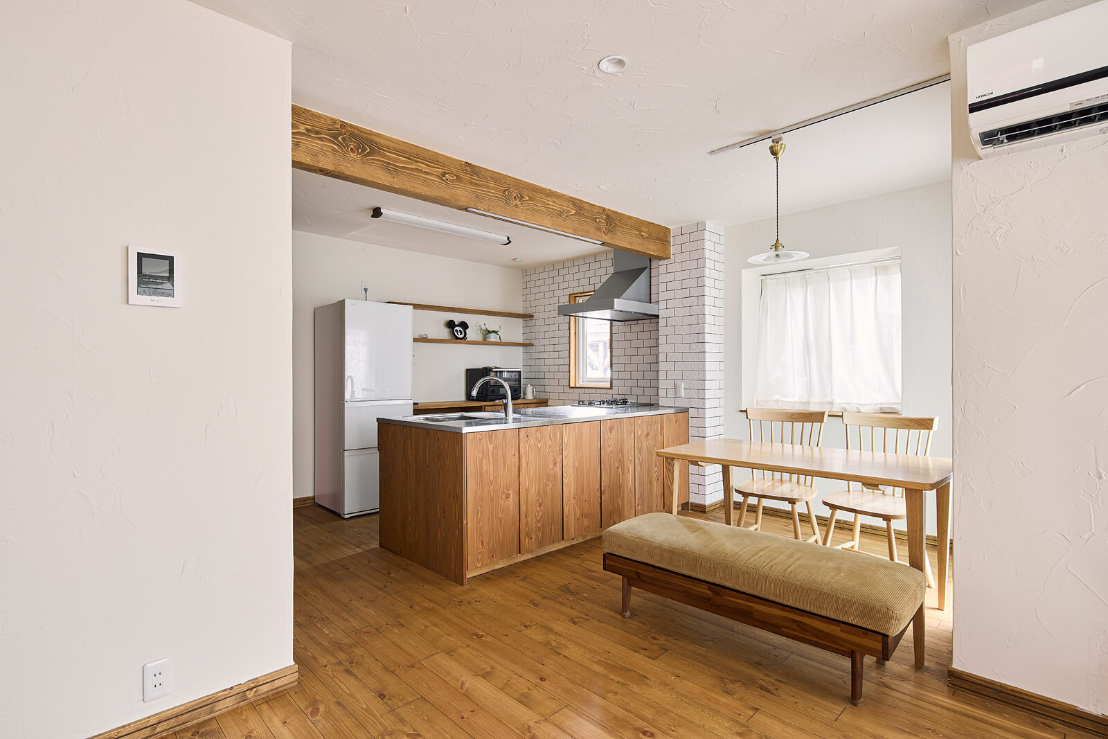 造作のオープンキッチンをあつらえたリノベーション住宅
