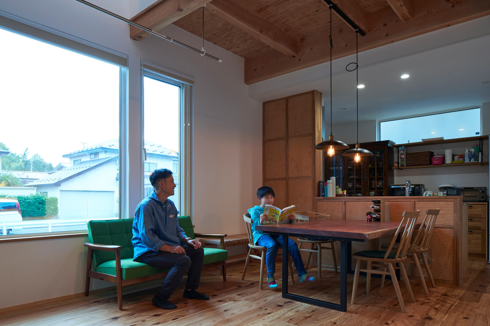 結婚以来、奥さんのご実家をリフォームした二世帯住宅で暮らしていたNさんご家族。「大きい家だったので冬の暖房費が大変でした。屋外の灯油タンクを冬の間に2回は満タンにしないといけなくて」とNさん。その経験から、今回の家づくりで最優先したのが省エネを叶える機能性の高さでした。そして同時に「ほっと安らげる木の温もりを備えた空間」であることも望んでいました。