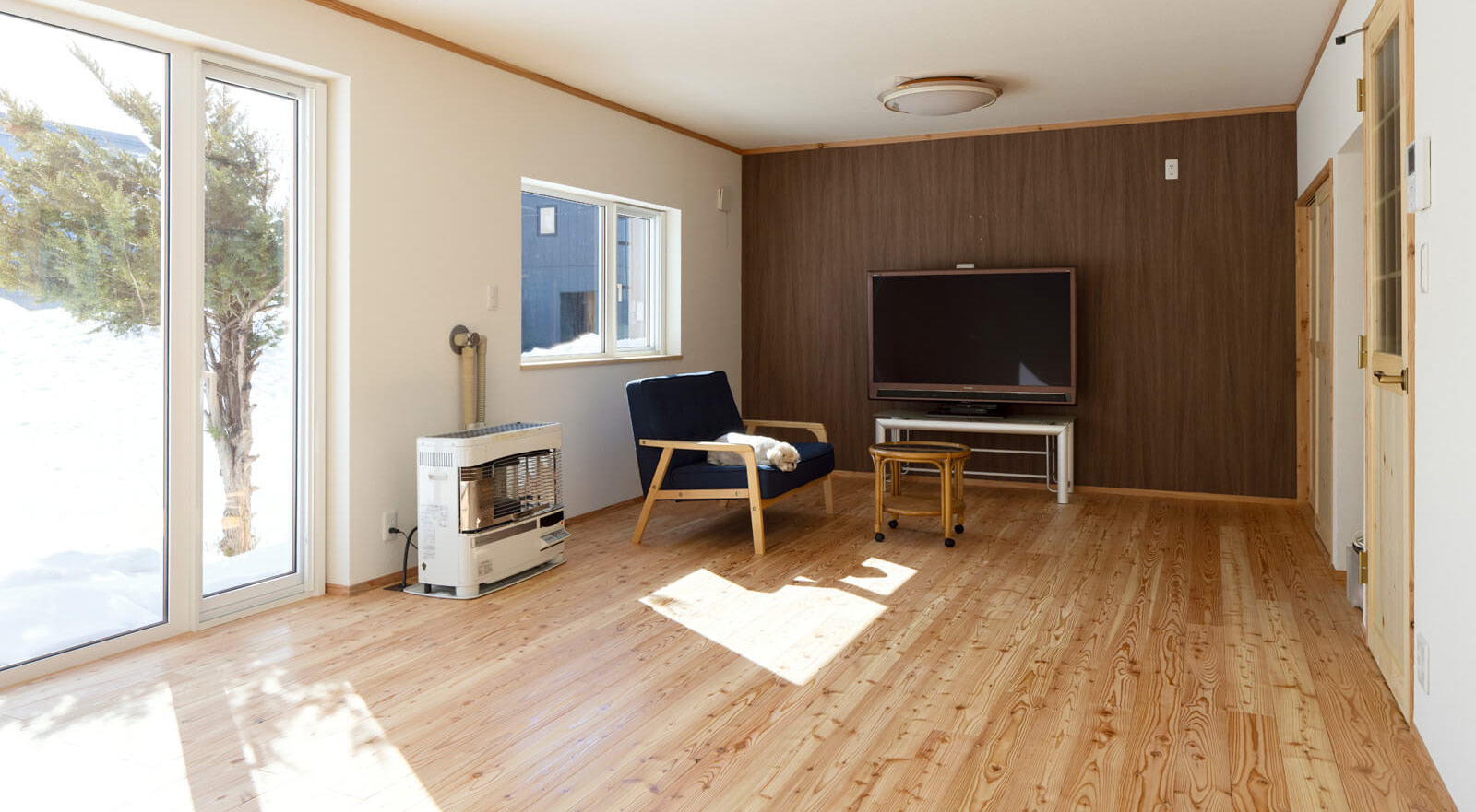 2024年2月、リノベーションを終えた住まいで新たな暮らしが始まりました。断熱改修にあたっては、外断熱に加え、床・壁・天井にしっかりと断熱対策を行い、窓は高性能樹脂サッシに交換。既存のFF式ストーブ1台でも十分に家中が暖かく、隅々まで均一な温度が保たれるようになりました。「リビングは陽当たりが良いので、晴れると暖房がいらないくらいの室温になります」と、笑顔のお母さん。