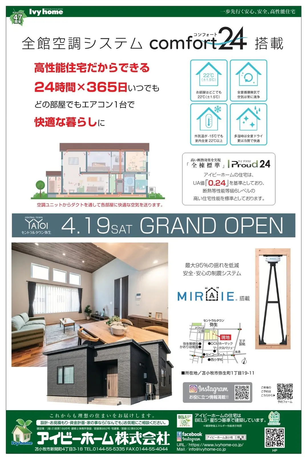 富山県のモデルハウスの実例です。土間下空間まで床下エアコンの暖気を行き渡らせた、高断熱・高気密住宅の室内です。