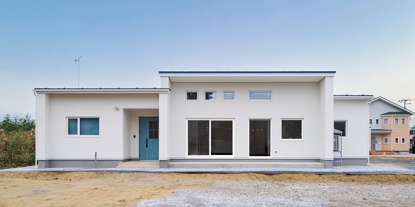 緩やかな勾配天井と南向きのリビングでのどかに過ごせる平屋
