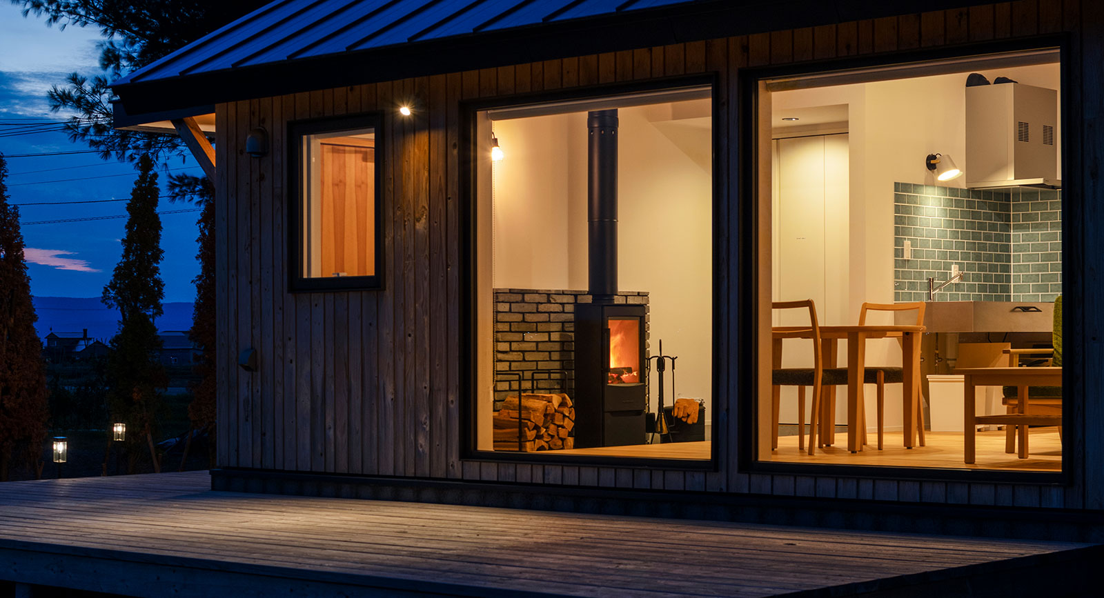 新天地で実現した理想の宿「青SORA Terrace」で、Wさんは「薪ストーブのある暮らし」というもう一つの夢を叶えました。