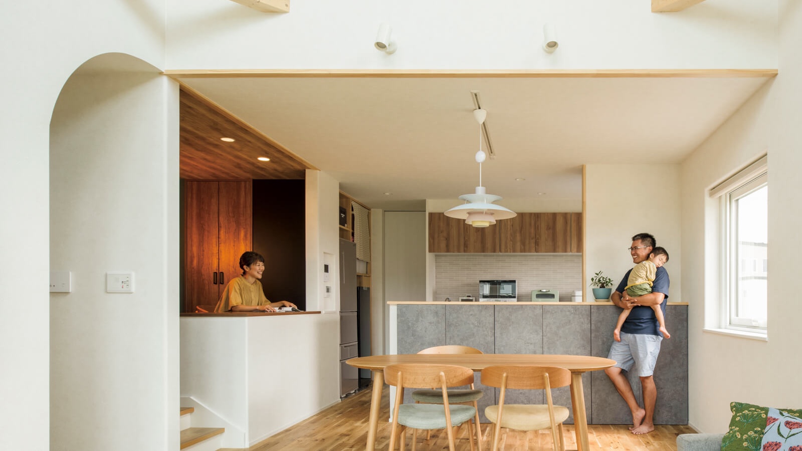 さらに太陽光発電パネルを搭載したZEH仕様で、エアコン1台で家中を暖冷房する全館空調システムも採用しています。意匠と性能が両立して初めて「デザイン」が成り立つと考える同社の技術が結集した新居は、暮らしを下支えする高性能による快適性と、暮らしに寄り添った自由設計がもたらすデザイン性の両立で導き出した心地よさの最適解。新居で迎えた初めての夏は「家中が常に清々しく、光熱費も実質ほぼプラスマイナスゼロです」と、快適で省エネな温熱環境を実感しています。