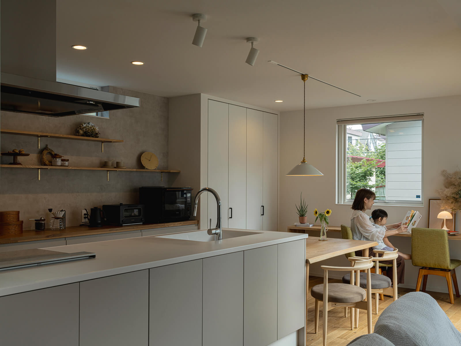 規格住宅は制約が多いというイメージでしたが『ILO』は自由設計で、標準仕様のグレードも良く、オプションでの選択肢も豊富で驚きました。目的に合わせた収納を入れ込んでもらえたり、キッチンスペースにたくさんこだわりを反映できたのも嬉しい想定外でした。新築を思い立ってから1年経たずに私たちにぴったりなマイホームが実現できて夢のようです。 |