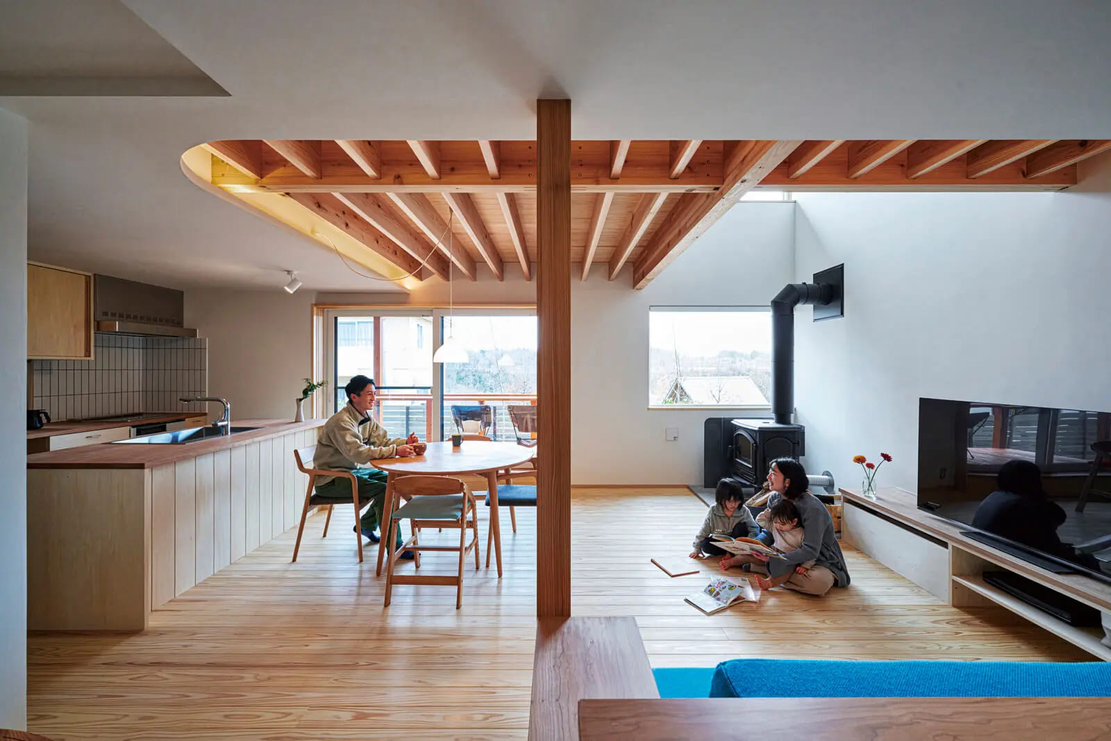 さっそく完成見学会に足を運んだお二人。「室内にいながらにして外の自然を感じられる家づくりが、アウトドア好きな自分たちの琴線に触れました」と、Sさんは語ります。奥さんも、「12月でしたが、家の中がとても暖くて…。漂う木の香りにも心地よさを感じました」と振り返ります。