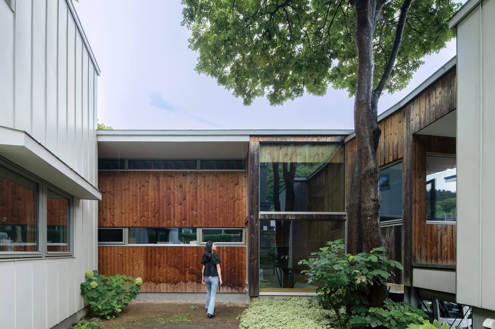 札幌市手稲区の小高い丘に立つ、ATELIER O2の建築家・大杉 崇さんの自邸兼事務所。背後に森を抱き、中庭に立つ一本のイヌエンジュとともに12年の年月を刻んできました。時間とともに移ろう家族の暮らしと、敷地奥の豊かな森。その暮らしは子どもたちやイヌエンジュの成長に呼応しながら、変わらぬ心地よさを保っています。