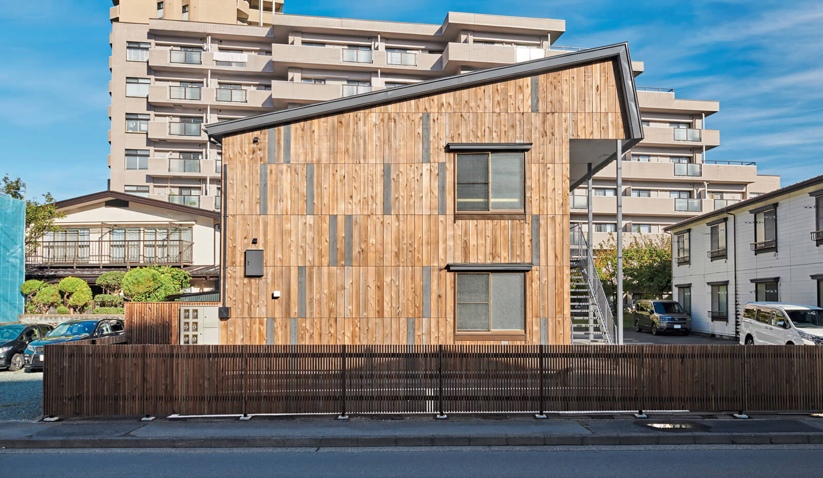 空間構成においては、自然環境の延長として機能するインナーテラスの土間を配置。内と外が混ざり合う、開放感ある暮らしをご提案しました。また、かつて木場であった土地の歴史を受け継ぎ、市産材を細分化して外装材として使用。街に温かな景観をもたらすと同時に、将来の部分改修を容易にするという持続可能性も備えています。