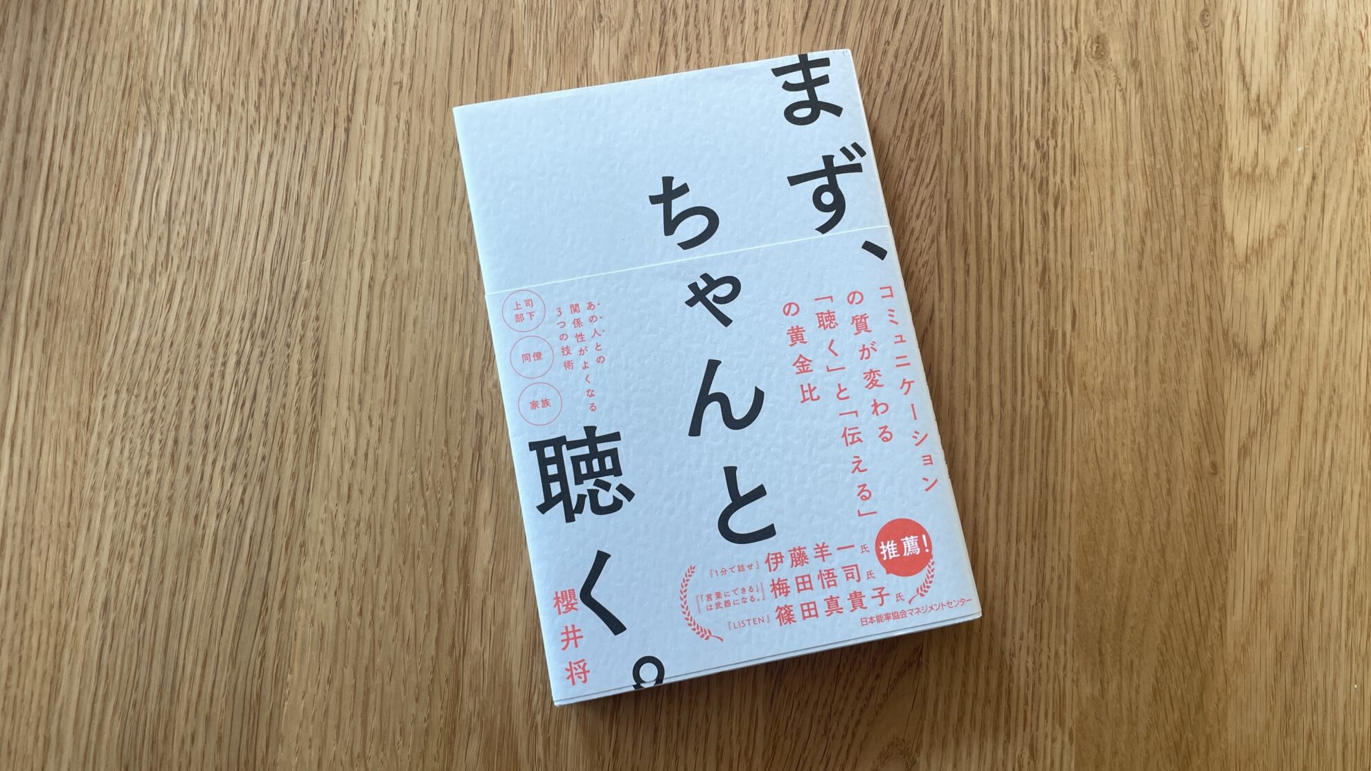 先日「まず、ちゃんと聴く。」という本を読みましたが、もうこのタイトルがすべてとすら思います。聴かないと伝えられないし、ただ伝えるだけでは伝わらない。言いたいことも言えない。こんな世の中だからこそ、まず相手の話を聴くことから始めてみるべきなのだと感じました。
