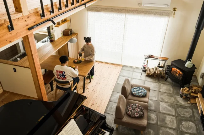 私たちが大切にしているのは、「ほっとくつろげる家」であること。そのために、いろいろなところにこだわります。例えば、無垢材や珪藻土など自然素材による仕上げは、見た目や肌触りに温かみが感じられ、くつろげます。また、家族の気配が感じられる間仕切りの少ない家も、安心感が増し、くつろげます。照明、収納、空気の流れ……どんなものにもひとつ手を加え、薪ストーブを主暖房に取り入れた快適に使いやすく心地よい住まいづくりを進めたいと考えています。