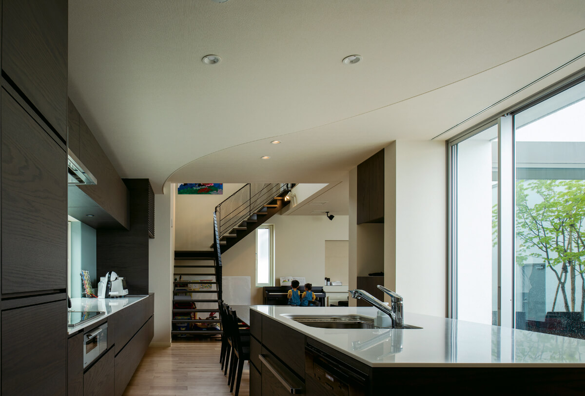 - ガレージハウス、コートハウス、バリアフリー、二世帯住宅、吹き抜け、回遊動線、平屋、店舗併用、薪ストーブ