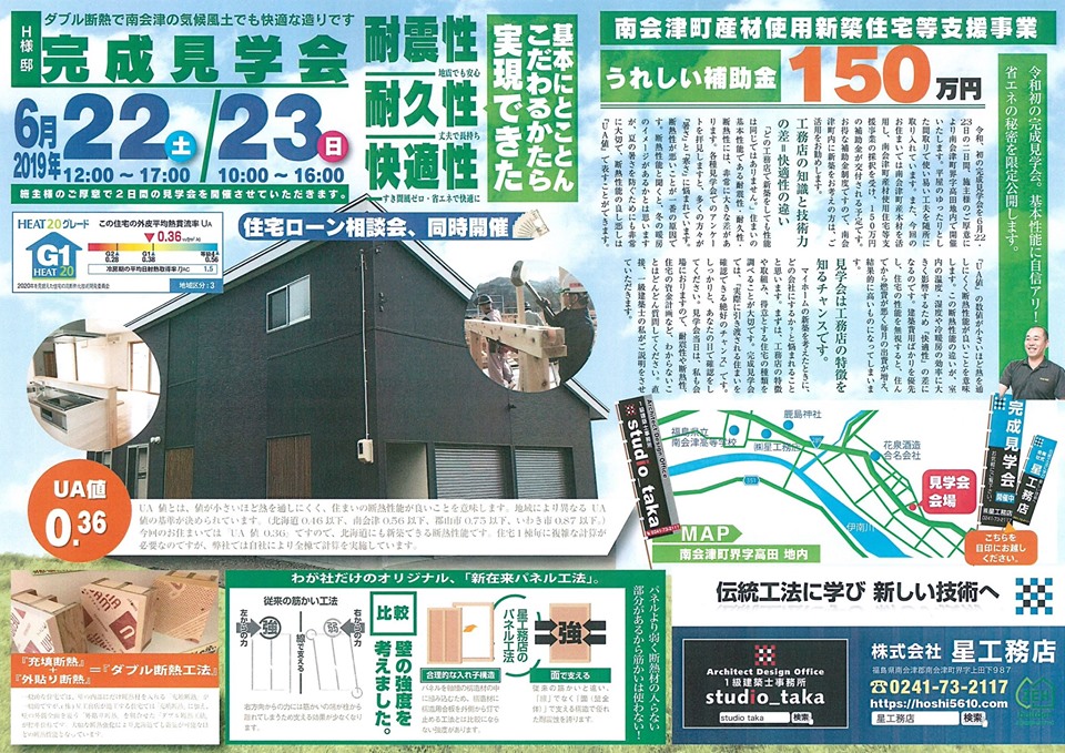 6/22(土)、23日(日)福島県南会津町にて「完成見学会」開催 ~(株)星工務店~