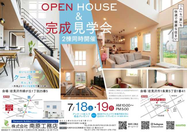 7/18(土)〜19(日)北海道岩見沢市にて完成見学会開催のお知らせ|南原工務店