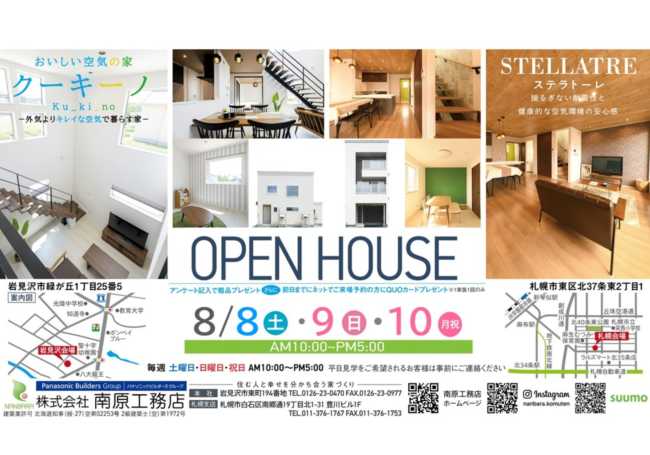8/8(土)〜10(月)札幌市中央区にて「3階建て・テクノストラクチャーの家」完成見学会開催|南原工務店
