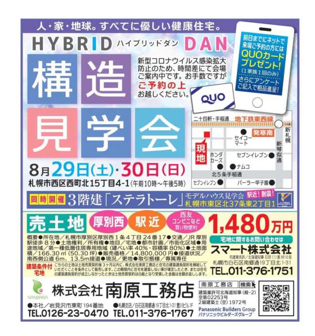 8/22(土)・23(日)北海道岩見沢市にて「クーキーノ」モデルハウス見学会開催|南原工務店