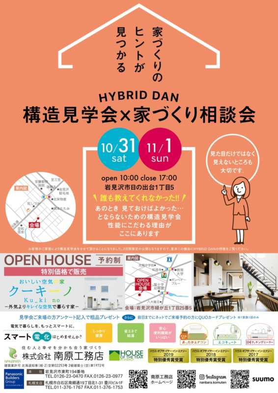 10/31(土)・11/1(日)北海道岩見沢市にて「クーキーノ」モデルハウス見学会開催|南原工務店