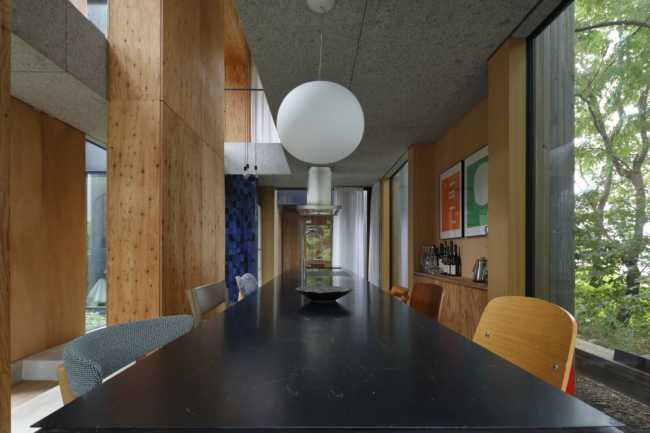 広瀬川河畔の桜の木に覆われるように建つほぼほぼ平屋の家。