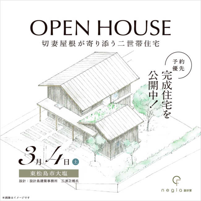 この度、郡山市内を一望できる高台に、3棟のairらしい住宅を建築できる機会に恵まれました。「安積町アーティスト村」と名付けたプロジェクトは、現在村人を募集しております。3棟だけの小さなコミュニティですが、緑豊かな住環境をコンセプトに戸建てとしての暮らしが楽しめる住宅であるように、airらしい工夫も盛り込みたいと思っています。プラン・デザインもご要望次第で変更も可能。暮らしを創造しようとする村人アーティストを応援する住宅となっています。高低差を活かした立地と美しい景観が魅力的な場所(土地)に、憩いの時間を豊かに上質な住まいを実現してみませんか。