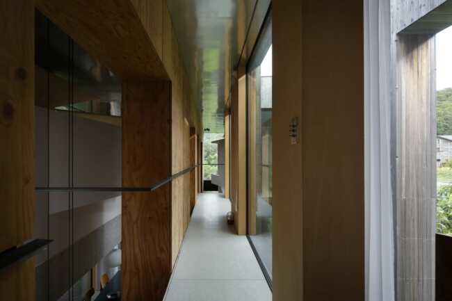 高台にある敷地で、海が見える2階に家族が集まる大きな廊下のある住宅です。