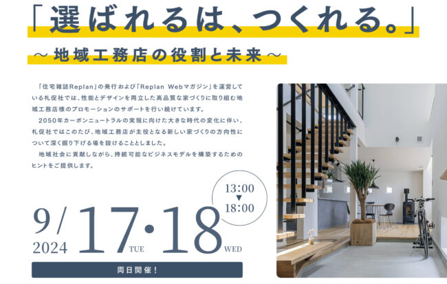 9/17-18開催!! Replanフォーラム2024 in 青森『選ばれるは、つくれる。』〜地域工務店の役割と未来〜 Replanからのお知らせ 公開日:2024.8.23 最終更新:2025.4.4