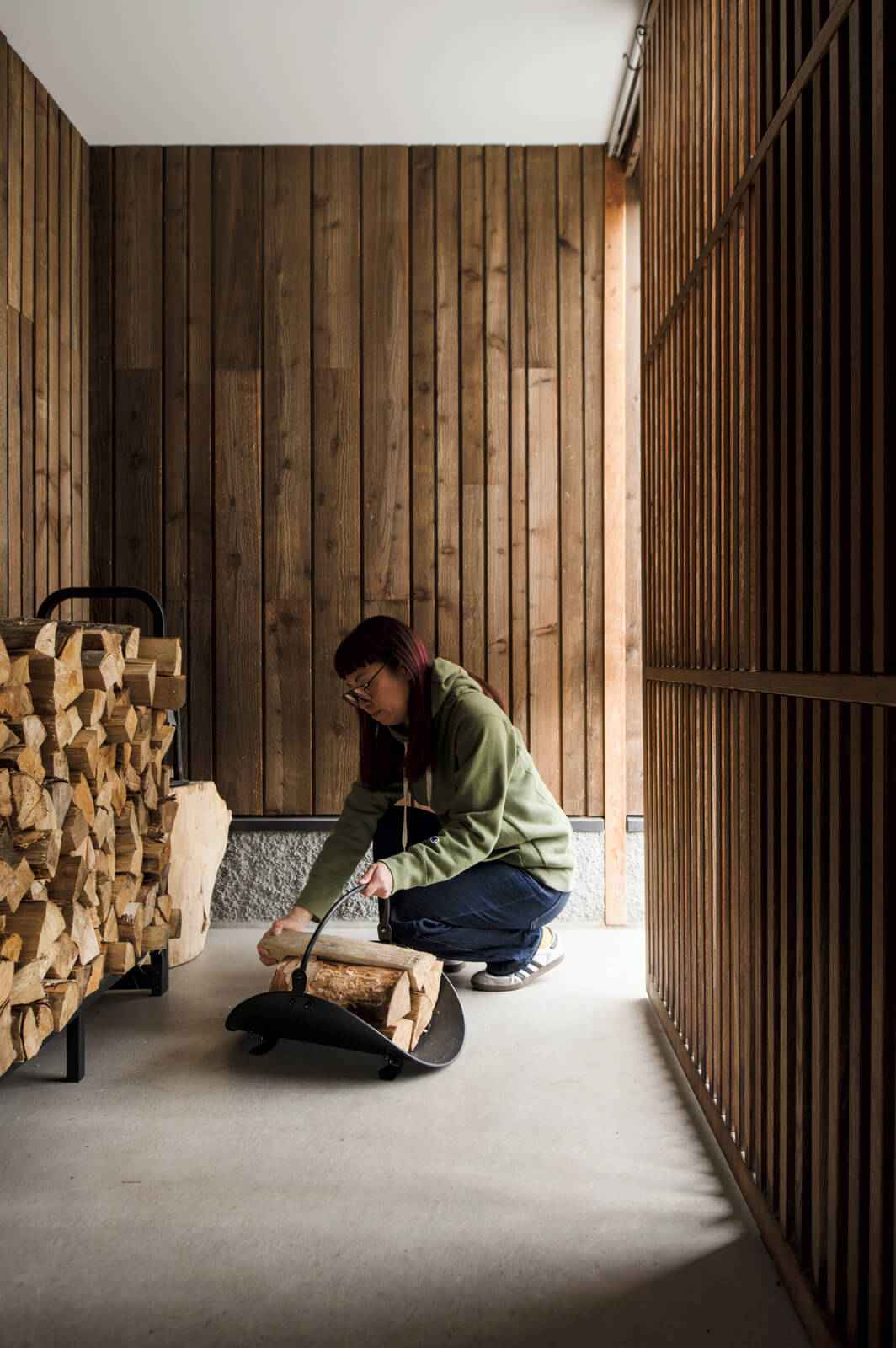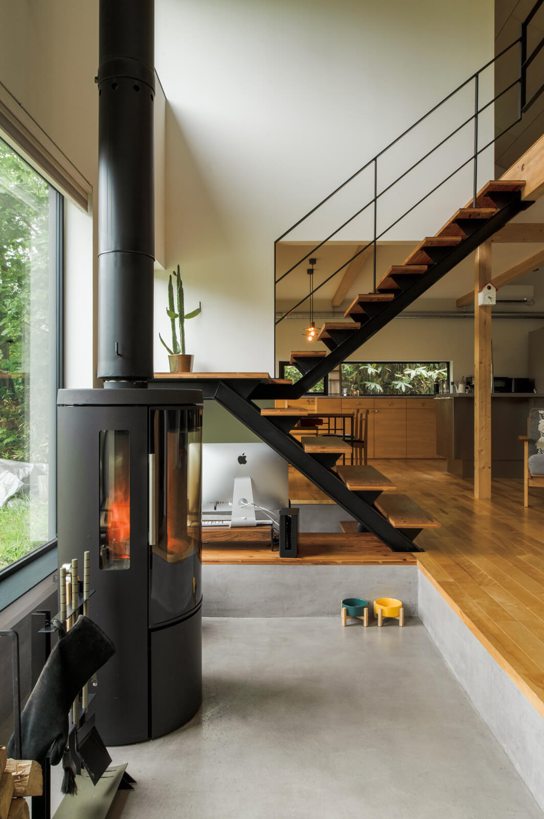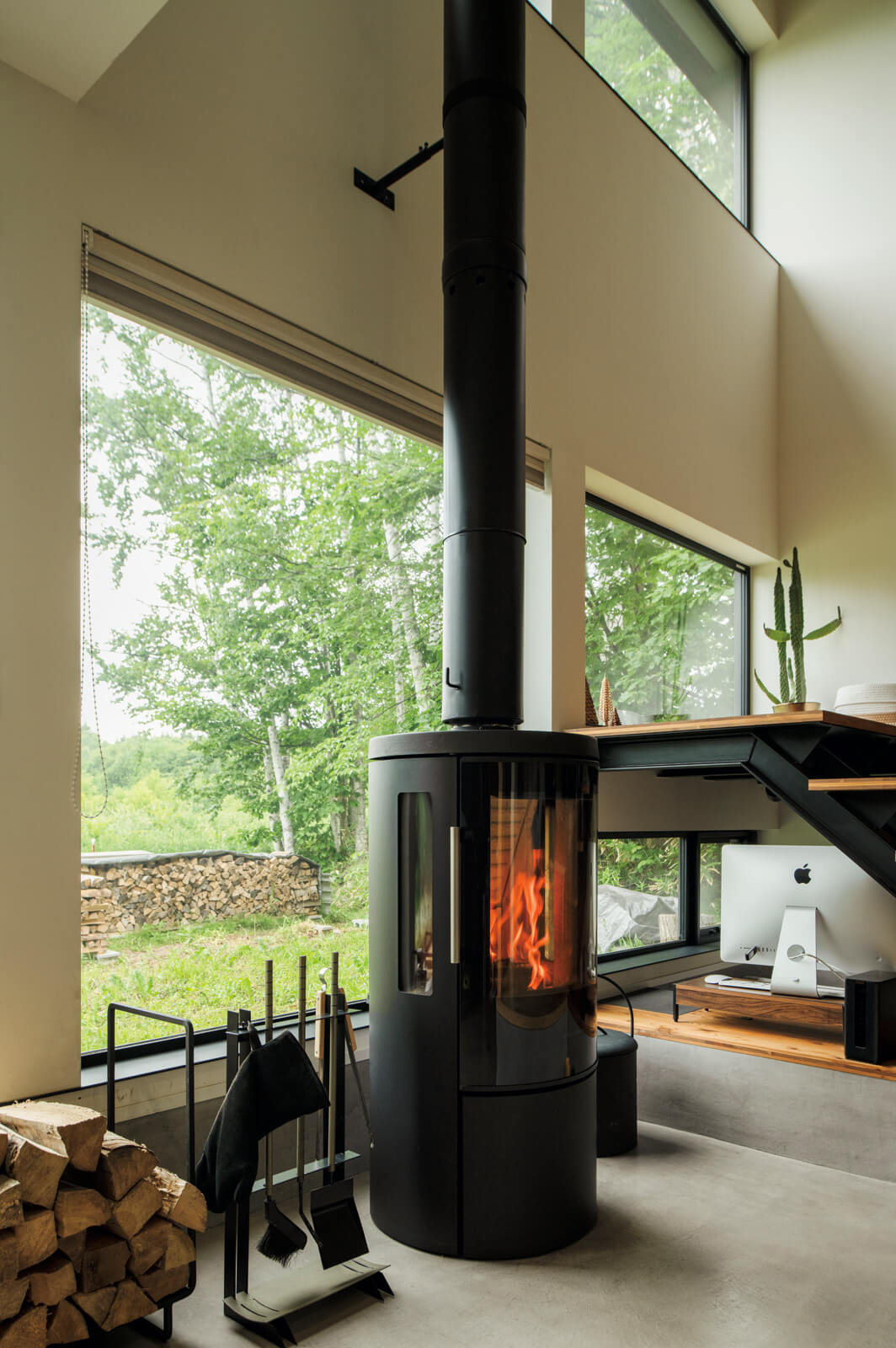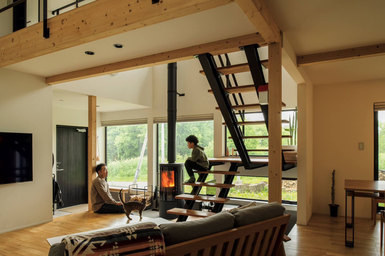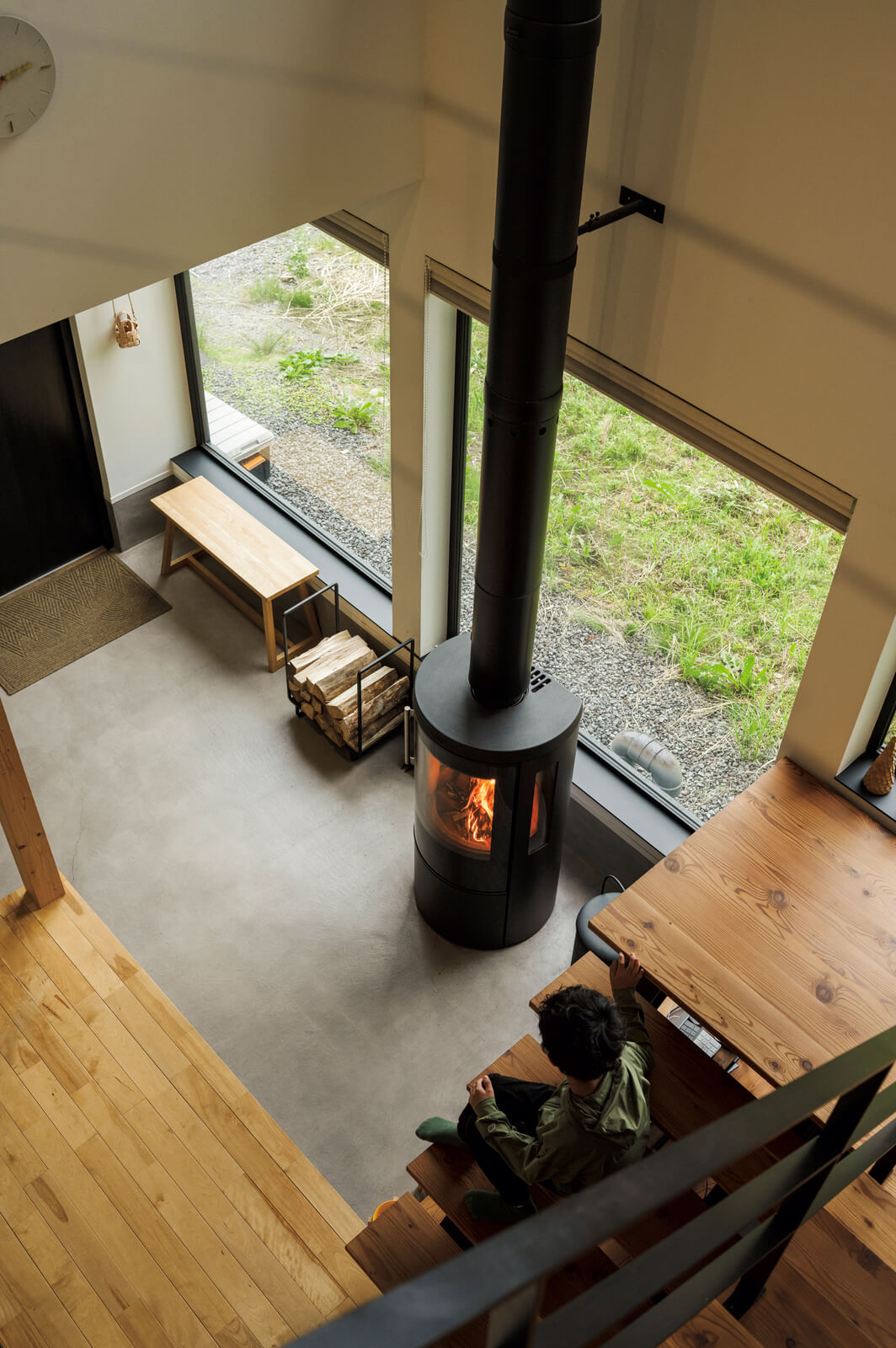炎に憩い楽しむ、薪ストーブ中心の住まい