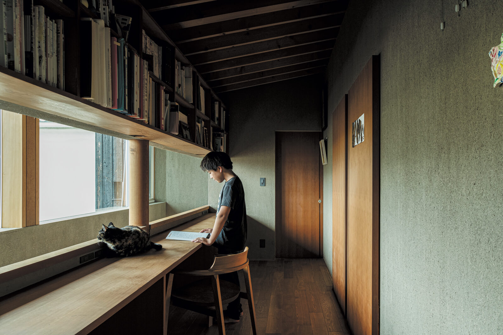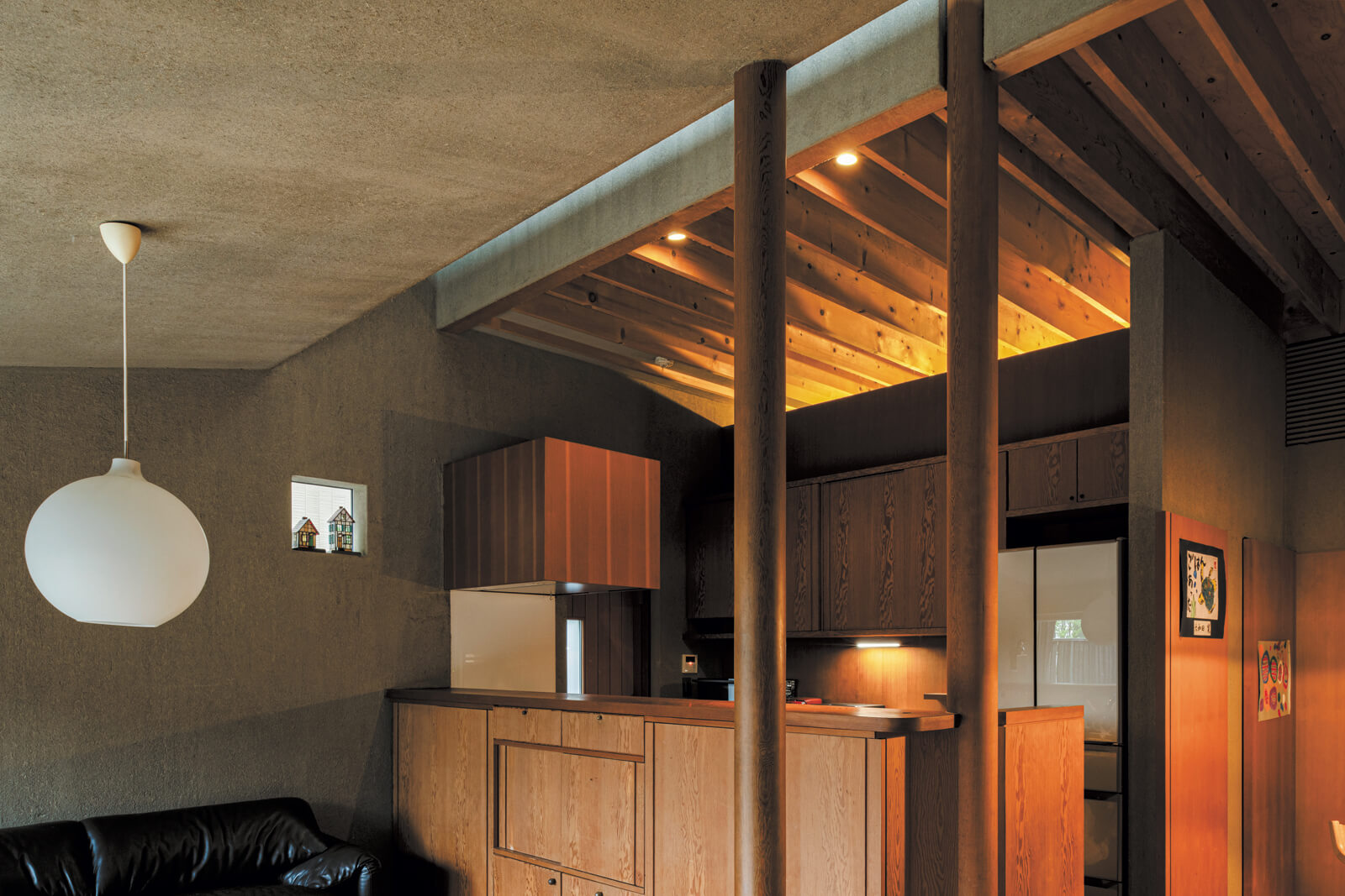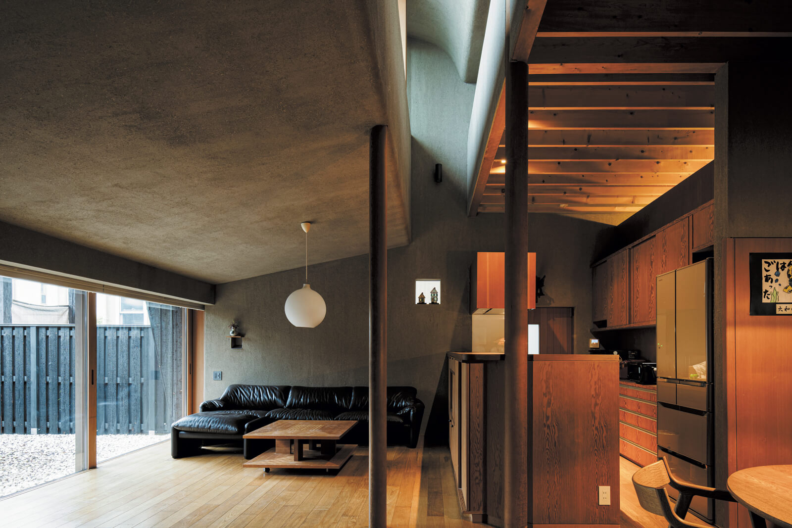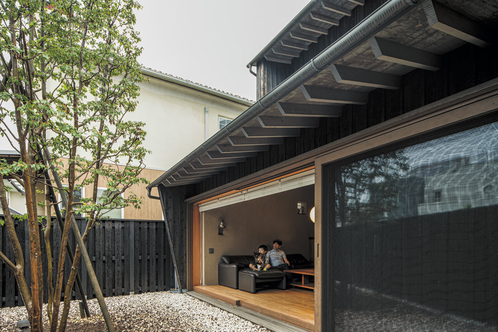 両親から受け継いだ住まいの寒さや結露に悩んでいたご一家が選んだのは、自然の力を引き出す建築家の設計で、一年中快適に過ごせる理想の住まいでした。焼スギや土壁、土間といった自然素材が、関東特有の湿気や温度を自然に整えてくれます。さらに、吹き抜けとリビングの大開口による巧みな光と風のコントロールが、心地よい開放感を創出。時を重ねて美しく経年変化した家で育つお子さんたちも、本物の素材を慈しんでいるそう。確かな性能と本物の自然素材が、ご家族の心身を健やかに支え続けています。